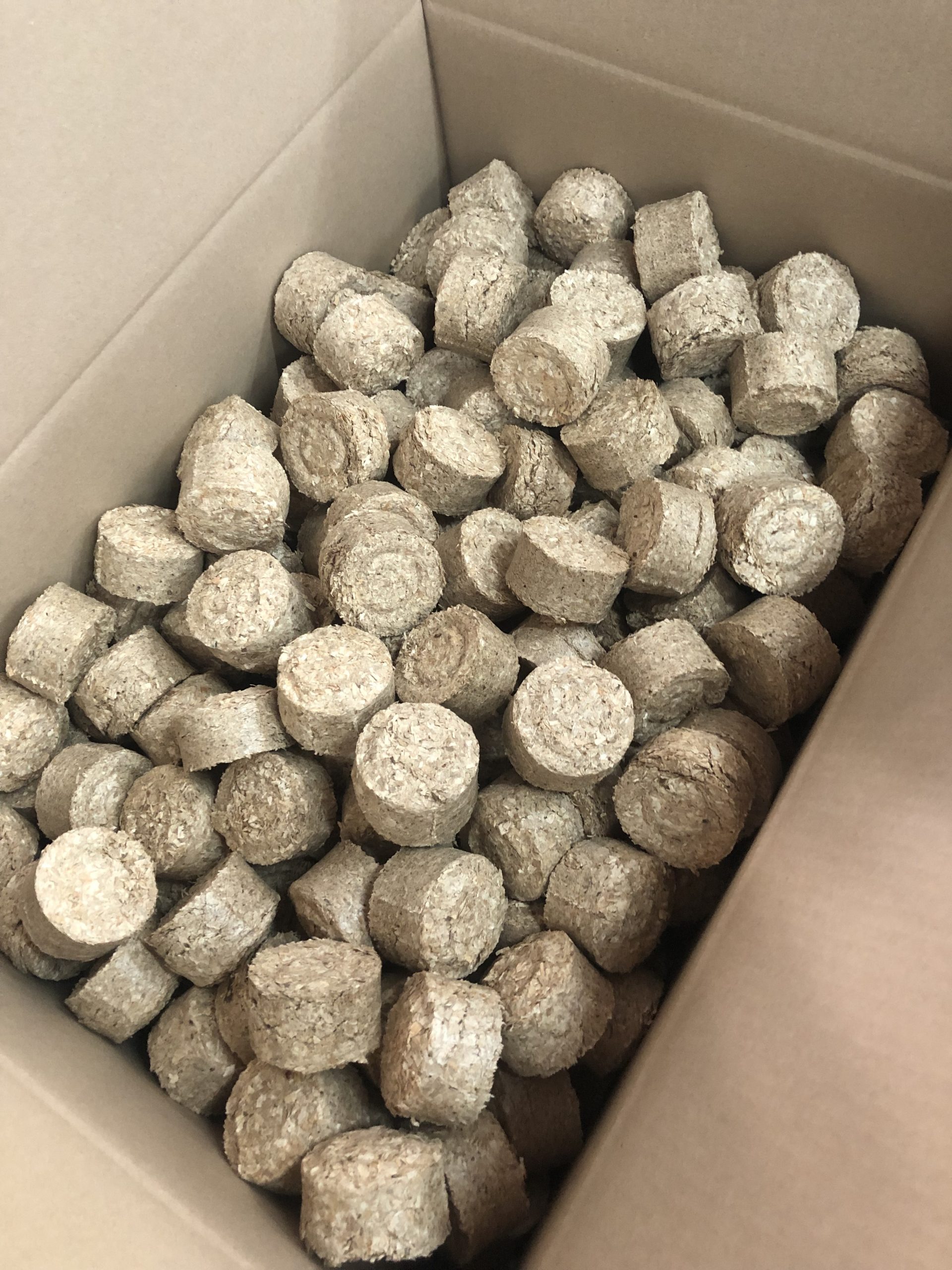 Sie kommen aus eigener Produktion und bestehen aus regionalen Holz, welches bei der Brennholzherstellung anfällt. Durch das Pressen werden die wertvollen Holzreste thermisch nutzbar.